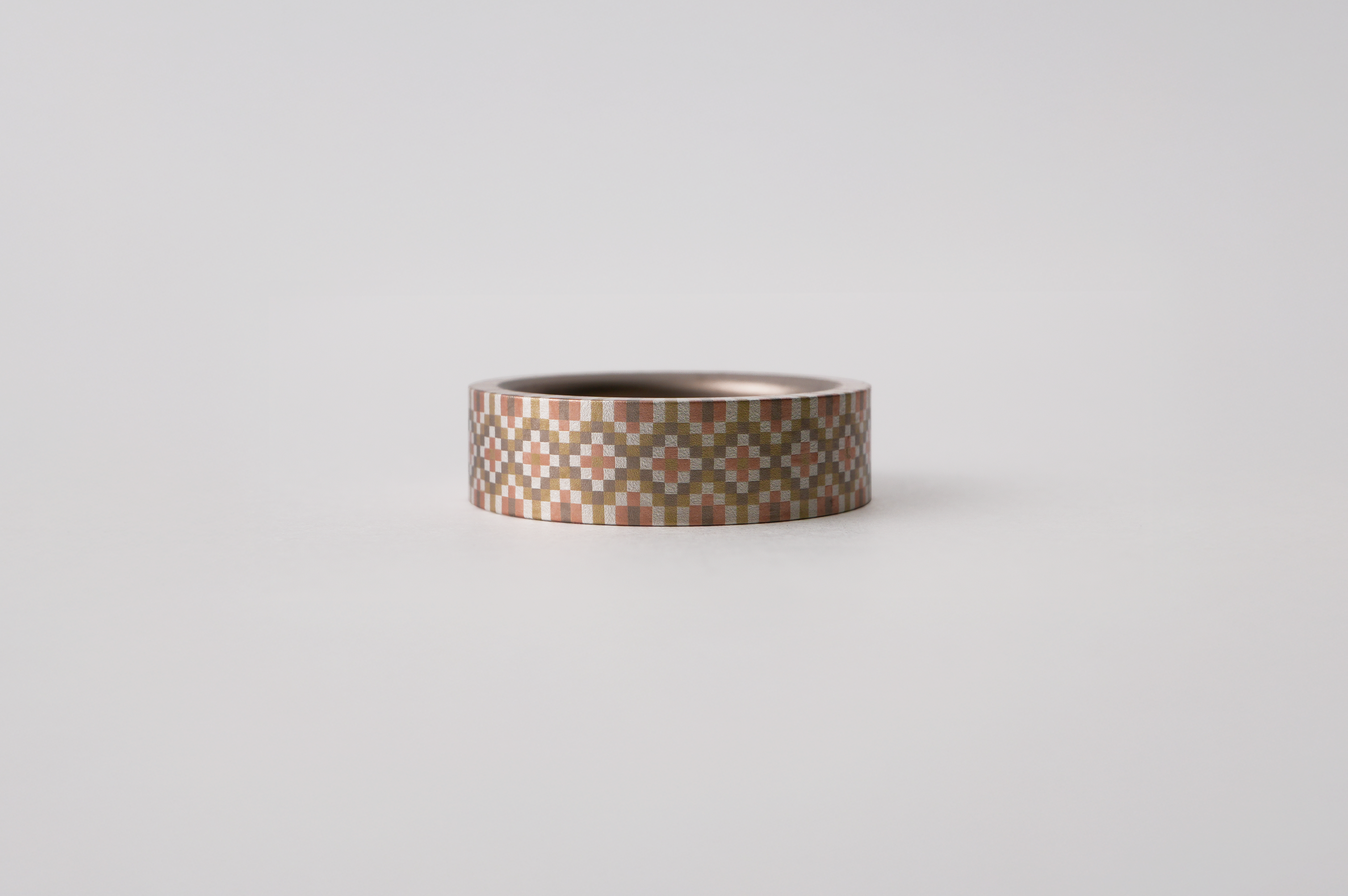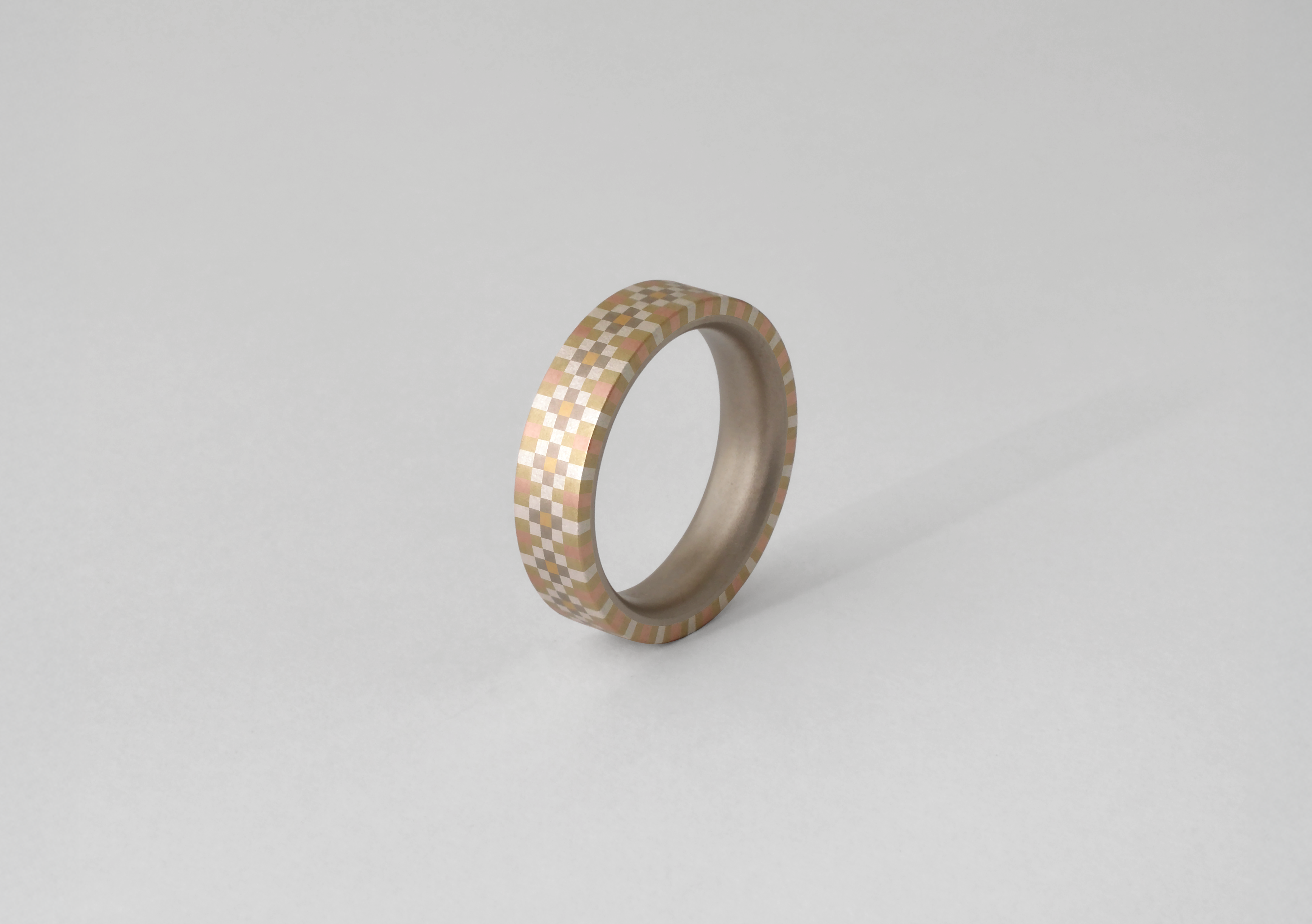 今回は注目の「block」コレクションも店頭に並んでいます。精巧な「組み木」を思わせるこのリングは、切嵌象嵌と接ぎ合せという卓越した技巧によって制作されたもの。