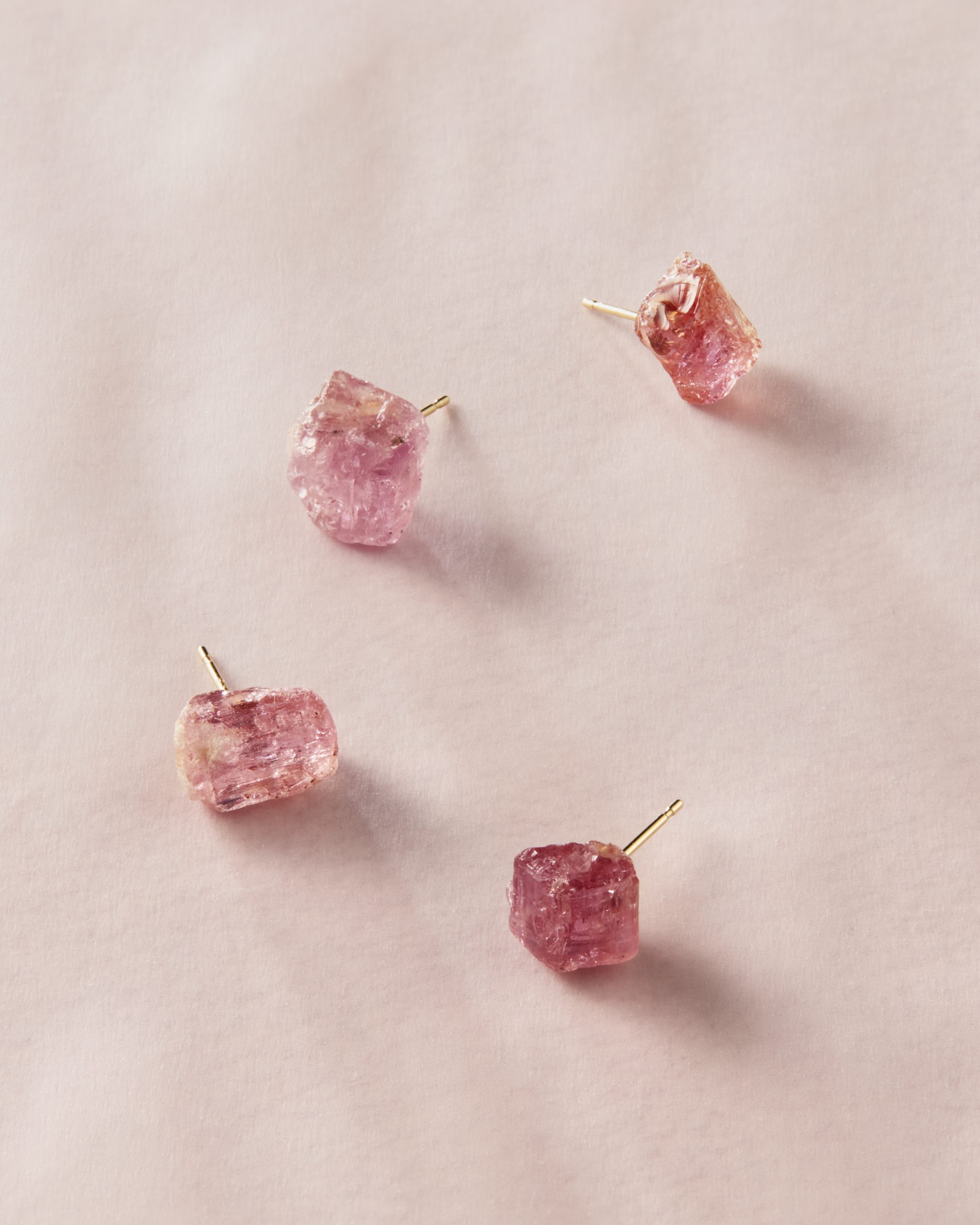 天然のテリや内包物の表情まで吟味して買い付けたピースは、過度な研磨や華美な装飾を施さず、自然のフォルムを残したリングやピアス、ネックレスに仕立てました。