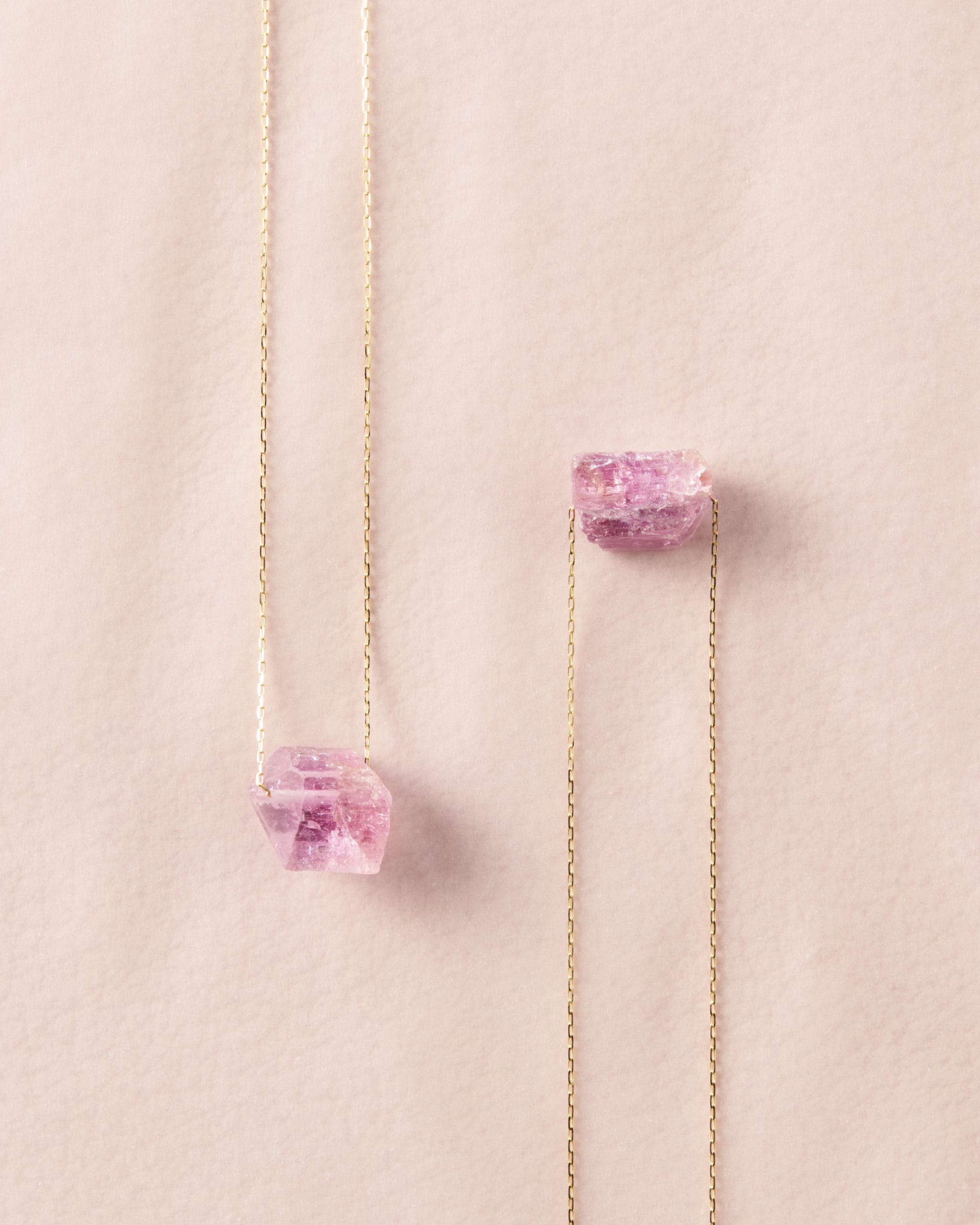 今回は、そんなインペリアルトパーズの中でも、淡いピンク色を含んだ原石や、ほのかに紫色を感じる原石を集めました。オレンジ色の中にほんのりとピンクや紫が溶け込んだ色合いは幻想的で、夕焼けから夜に変わっていく空をそのまま切り取ったような静かな優しさをまとっています。