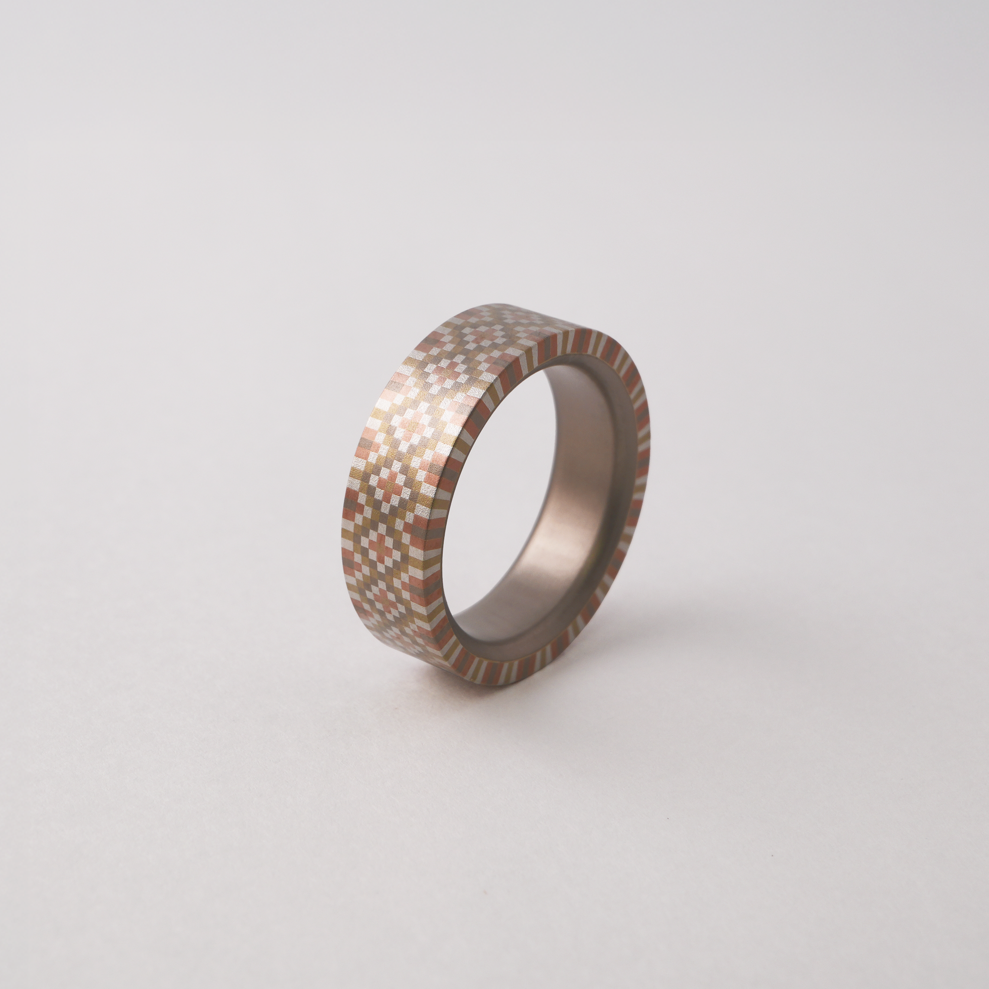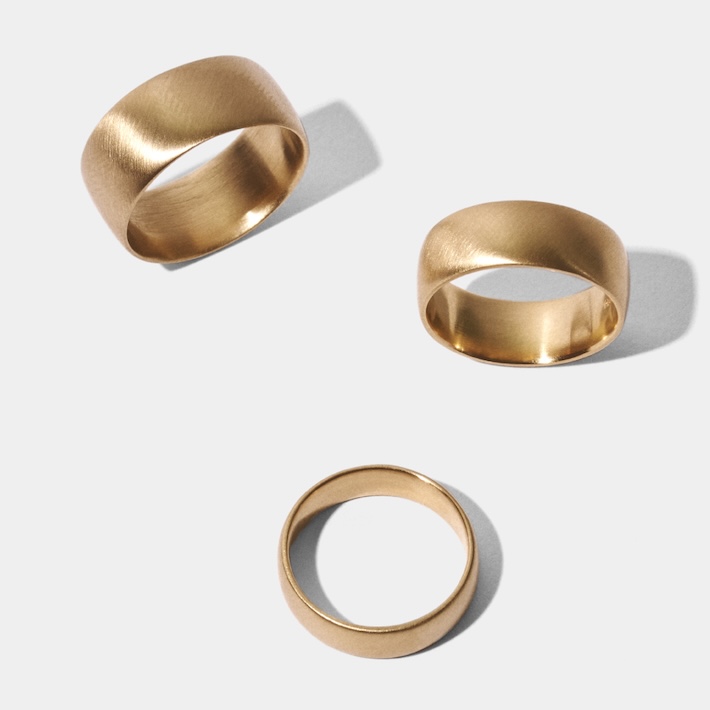 1周を4面・6面が連なるよう配置してあるデザインは、面ごとに仕上げを変える事ができ、ご希望のイメージに合わせたカスタムオーダーを承ります。1周全てデザインされているため、指輪のどこが正面を向いても絵になるシンプルかつデザイン性の高さが魅力です。