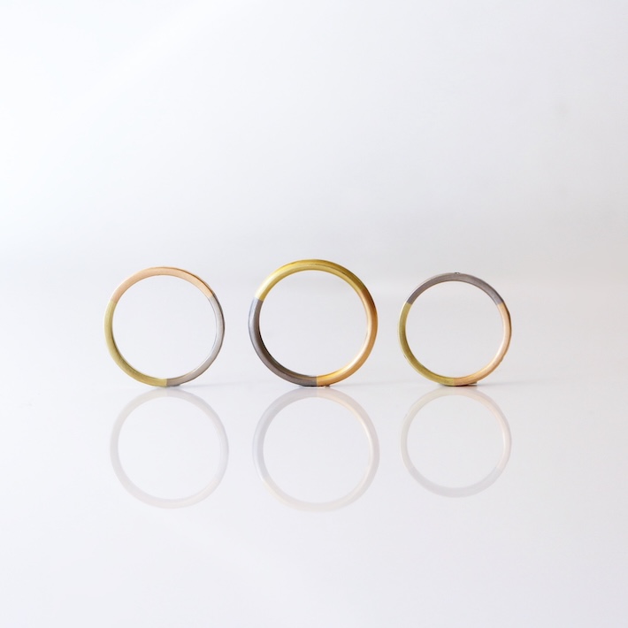 手作業ならではの温かみある表情のデザインが人気。表面のテクスチャー、地金のミックスなどを店頭でイメージをお伺いしながら細やかなオーダーが可能です。