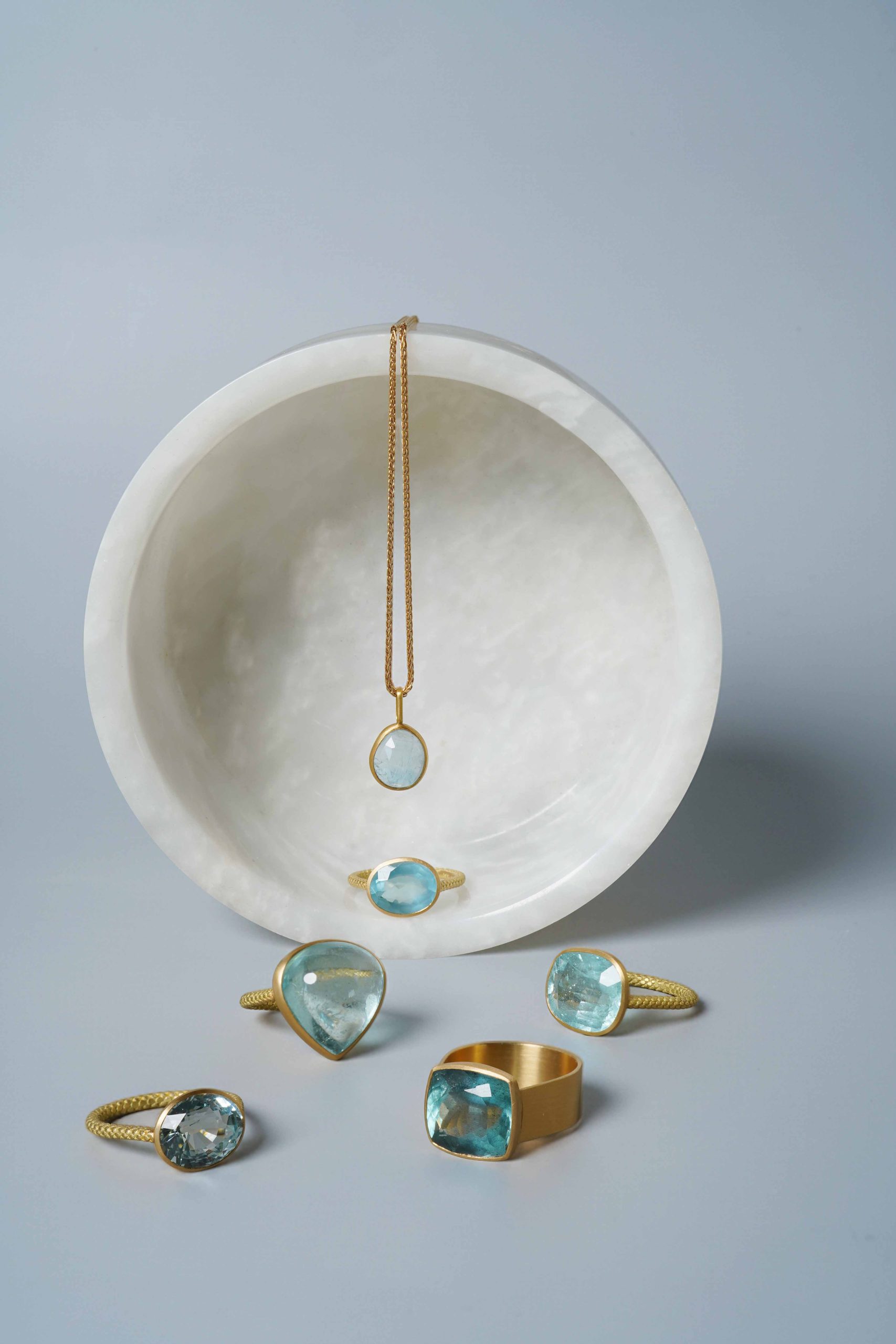 同じアクアマリンでありながら、フォルムと構造によってまったく異なる印象を纏うコレクション。春の訪れとともに、自分だけのブルーを見つけにぜひお立ち寄りください。