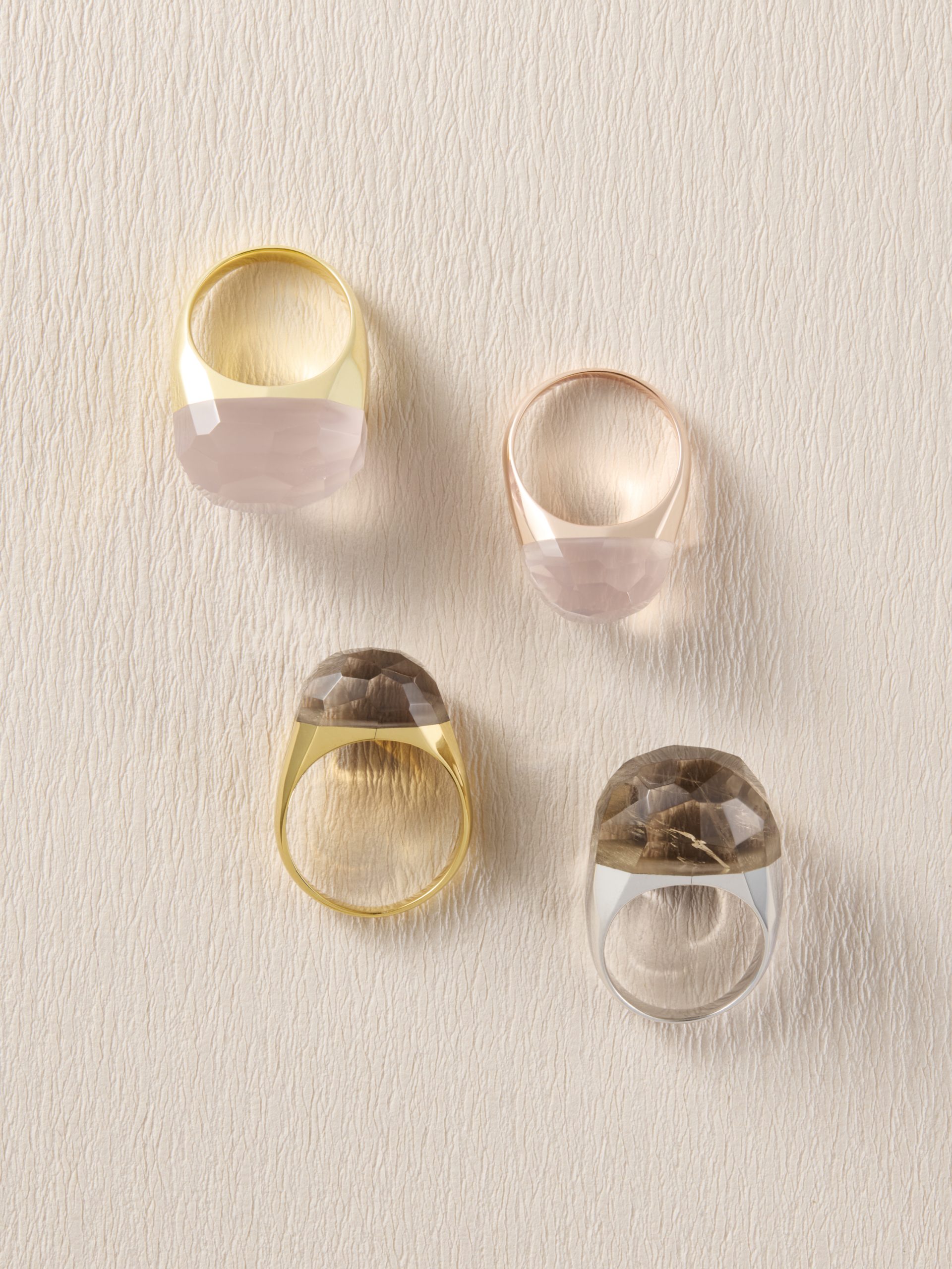 包み込むような優しい輝きを放つ大ぶりのロックリングは、今回が初登場。存在感がありながらも、肌に溶け込むような佇まいが魅力です。