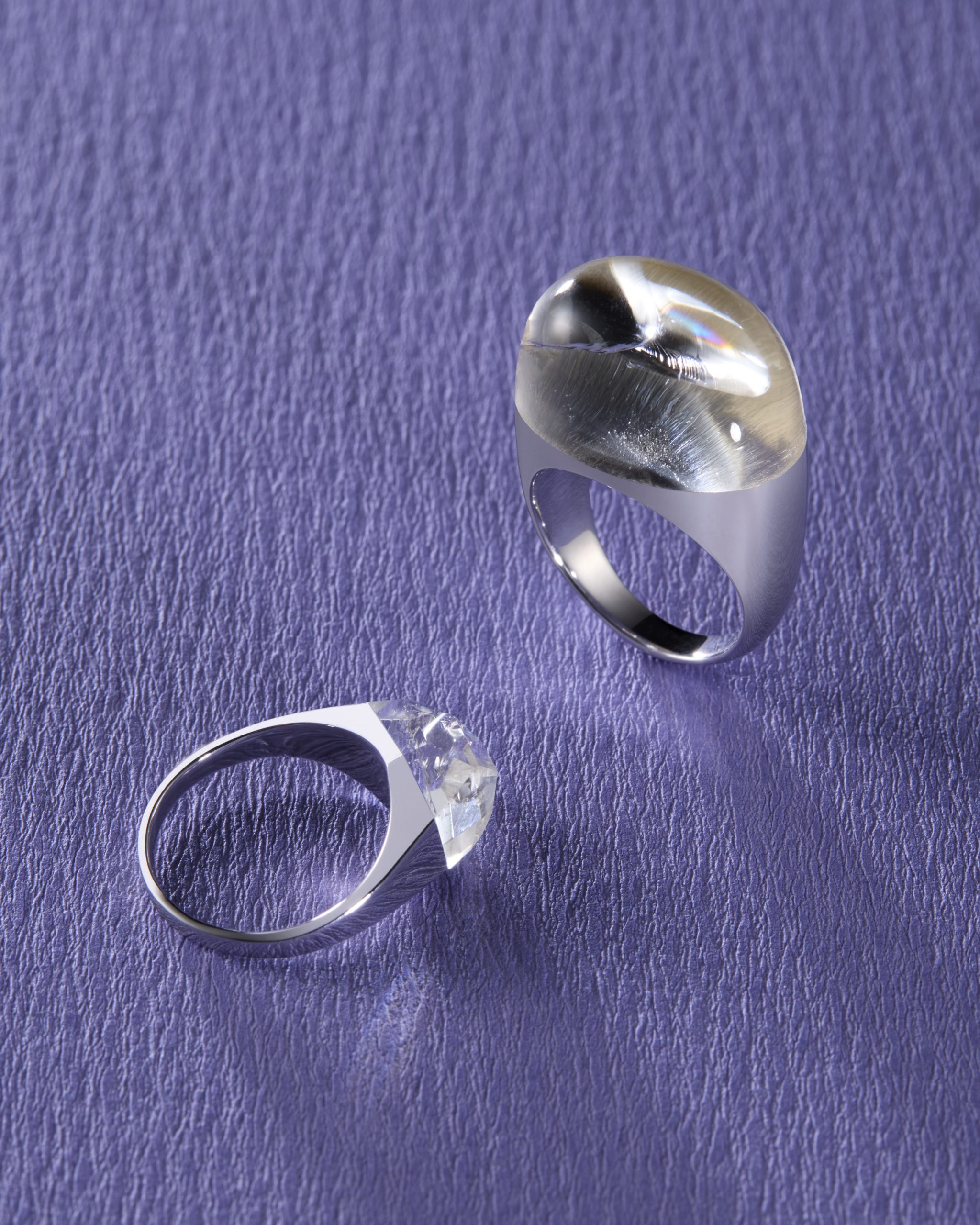 CULET伊勢丹新宿店に、久しぶりに登場するのは虹色の光を宿す石・レインボークオーツを用いたロックリング。今回は、これまでにないクリスタルカットとファセットカットのリングが初めてお目見えいたします。