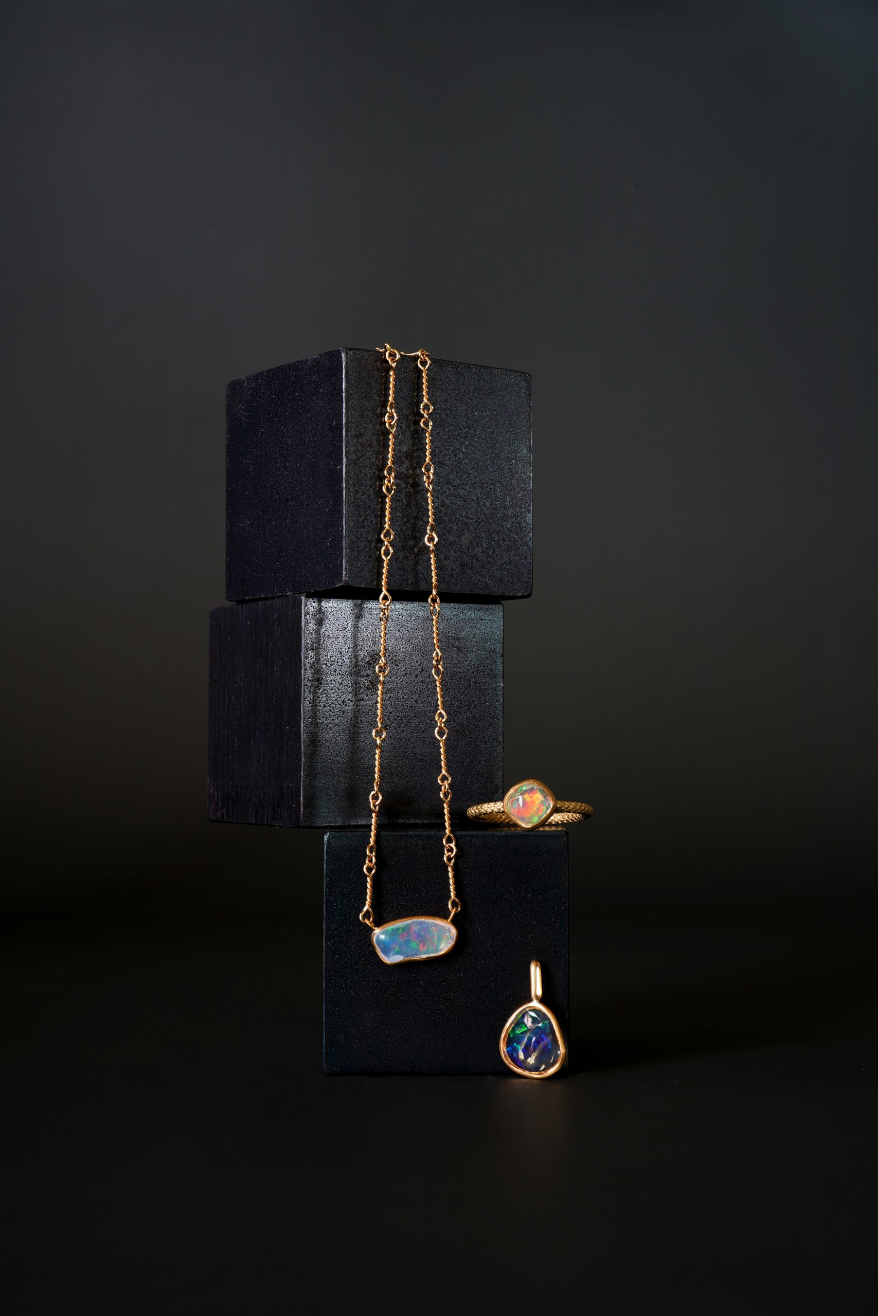 光とともに表情を変えるウォーターオパールは、日常に特別な彩りを添えてくれます。虹を纏うようなひとときを、ぜひ店頭でご体感ください。