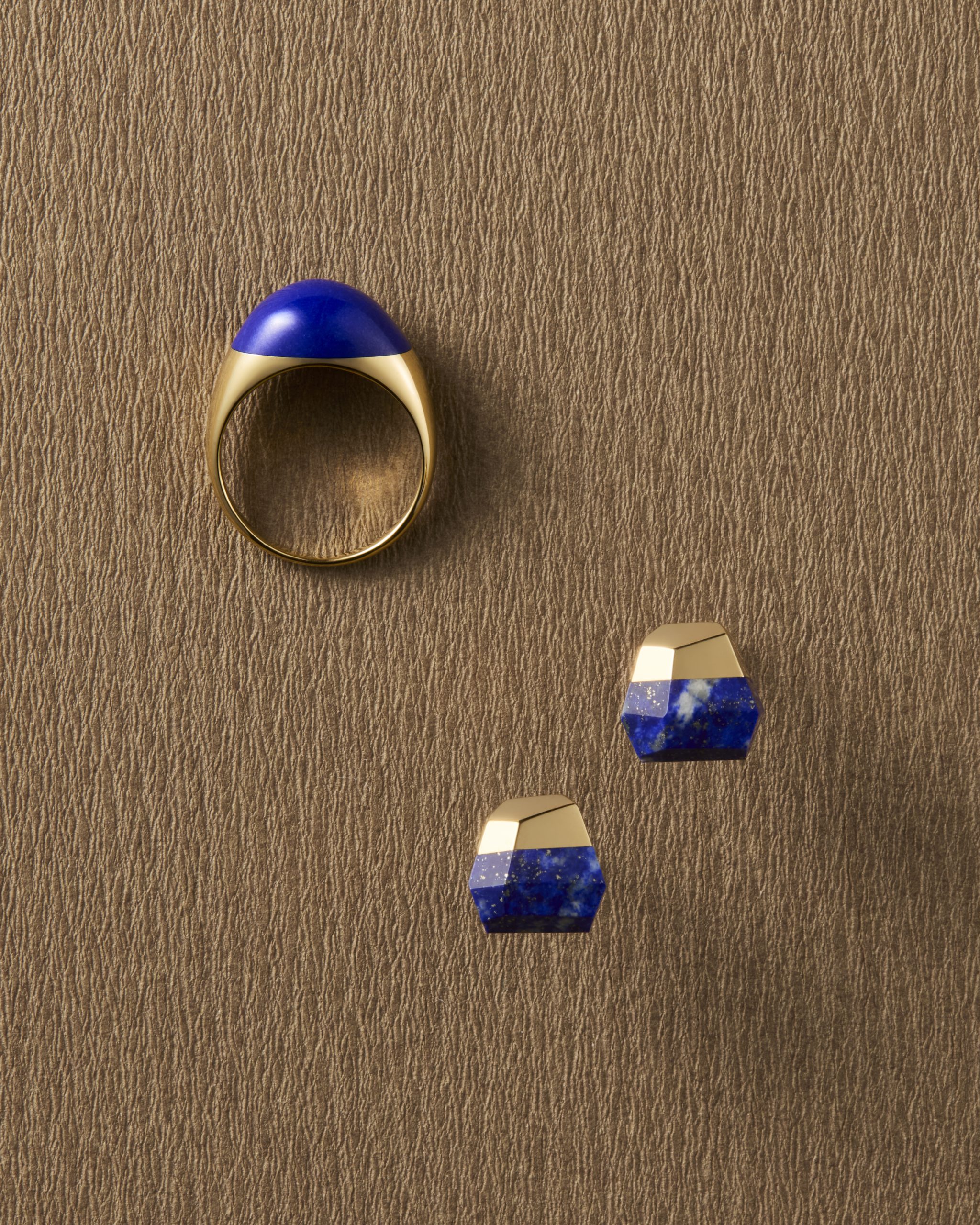 石と地金の境目が生まれないよう丁寧に仕上げられたシームレスなデザインは、覗き込む角度によって表情が変わるラピスラズリの魅力をダイレクトに楽しんでいただける特別な仕様です。