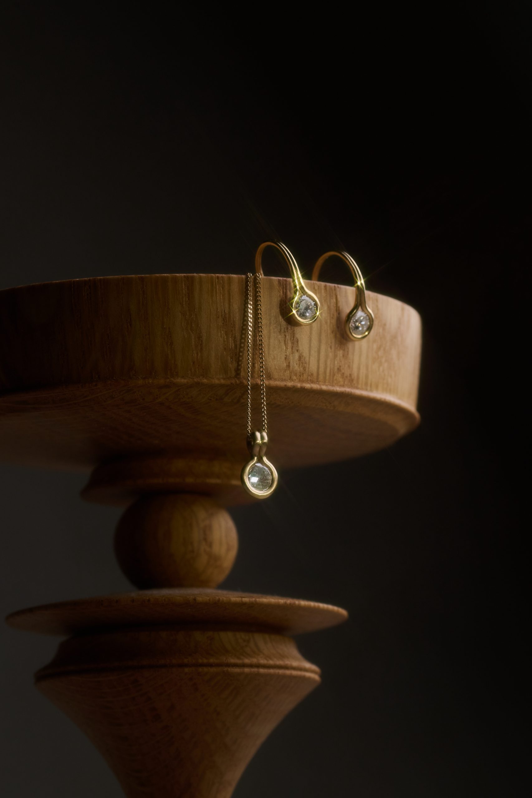 天然のテリや内包物の表情まで吟味して買い付けたピースは、過度な研磨や華美な装飾を施さず、自然のフォルムを残したリングやピアス、ネックレスに仕立てました。